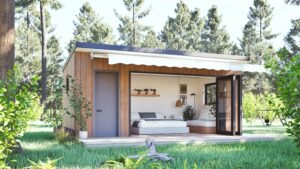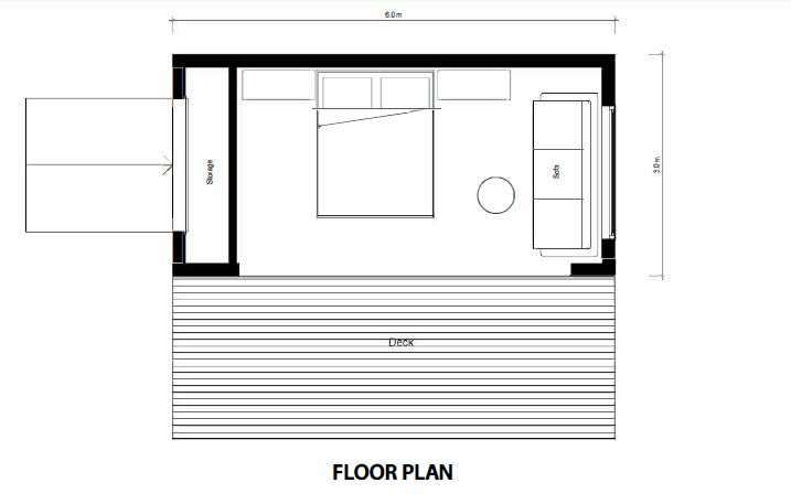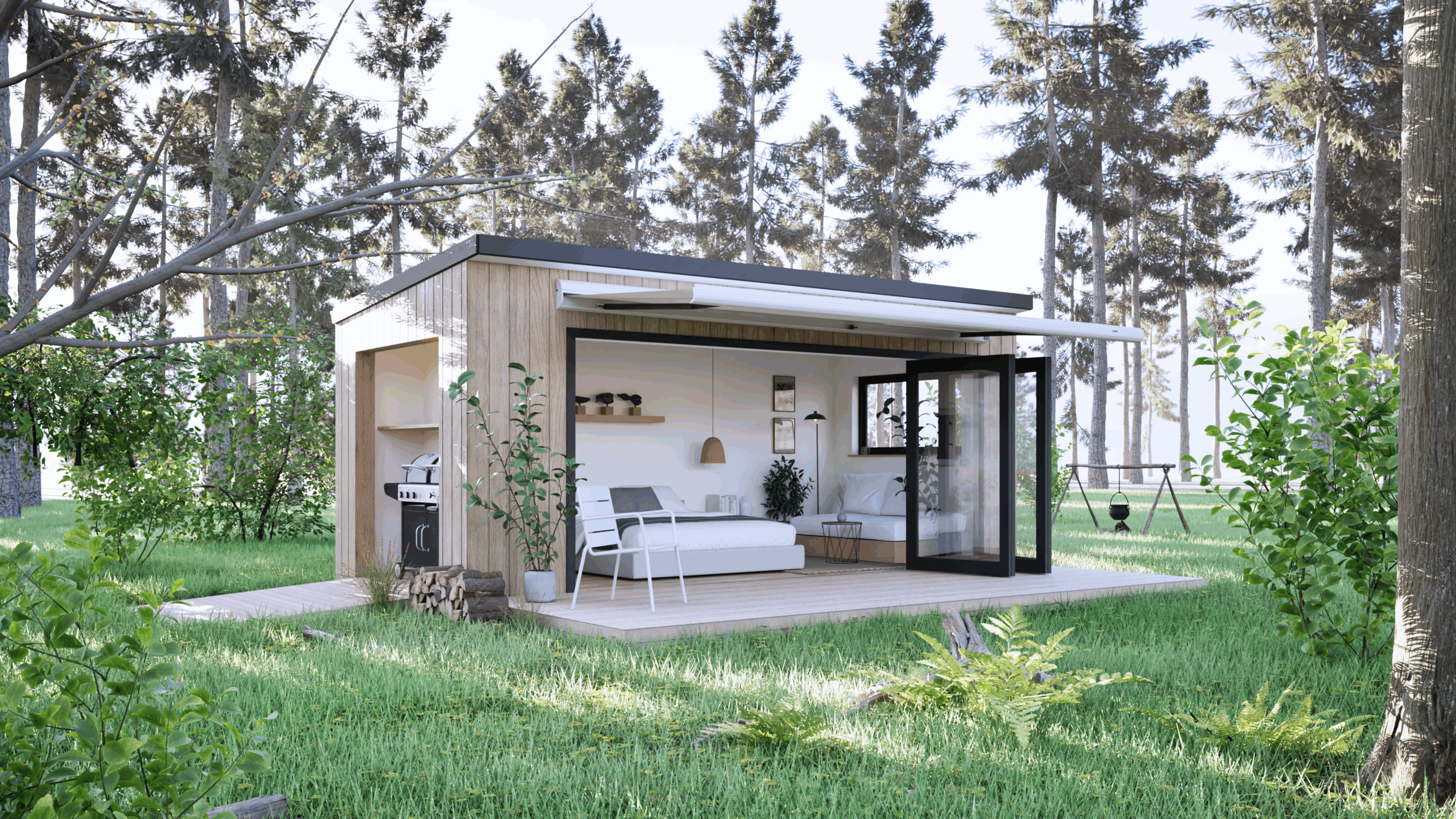 The 6×3 Sanctuary sleep-out is one of our most versatile cabins, complete with fold decking and roll out 4m awning for awesome indoor-outdoor flow.